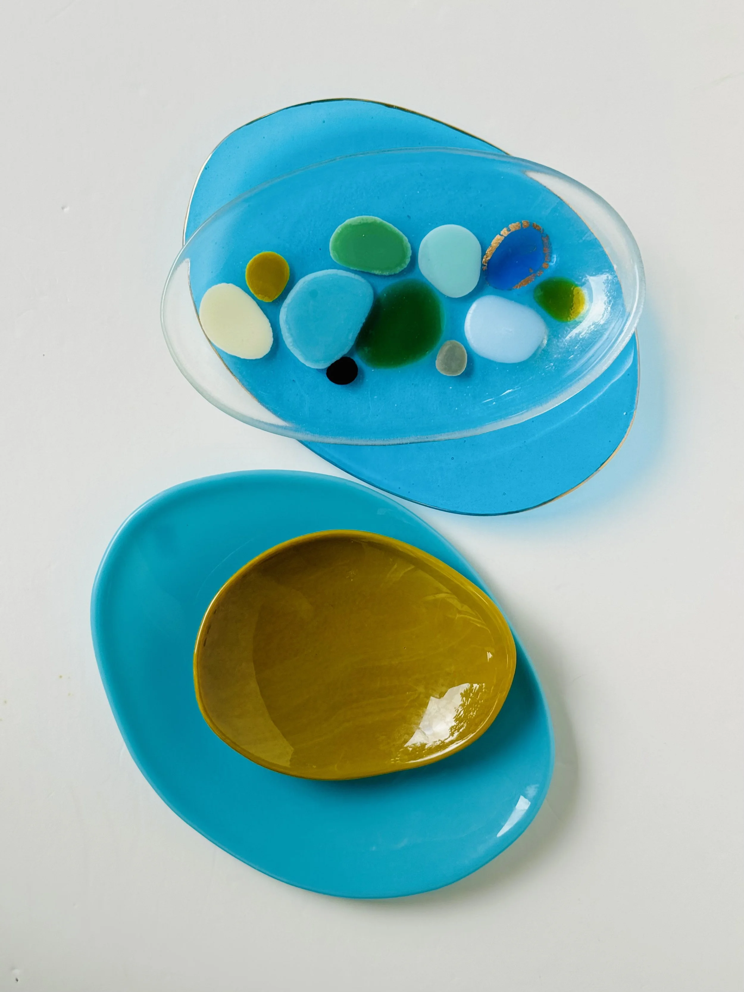 My love for glass artistry began when I took a college class on glass fusing. My first pieces - large serving bowls -left me with enough glass to start making smaller accessories like earrings and pendants. I loved their unique look and so did the friends and family who received them for Christmas!
